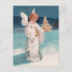 A charming vintage Christmas postcard featuring a beautiful angel with a golden bell and fir tree, painted by the American illustrator/commercial artist Ellen Hattie Clapsaddle.