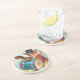 A charming vintage coaster featuring a drumming rabbit and a little bunny dancing with a chick, painted by the American illustrator/commercial artist Ellen Hattie Clapsaddle.