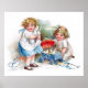 A beautiful vintage poster featuring two cute girls playing with bunnies, painted by the American illustrator/commercial artist Ellen Hattie Clapsaddle.