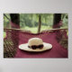 This is a poster with a claret hammock, sun hat and claret sunglasses in a yard. Claret is a colour for people born in November. The picture is a digital photo made with generative art. The image features a claret hammock, a sun hat with a black band and claret sunglasses. The background is a yard with trees. You can get Instant Downloads of the image. You can add a name with the Personalise button.