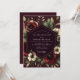 Embrace a sense of opulent romance with this dramatic floral composition. A deep claret backdrop highlights lush, painterly blossoms in shades of rich crimson and soft cream. Rendered with artistic flair, crimson poppies and light anemones are interwoven with muted green leaves, creating a moody and sophisticated aesthetic. This design evokes a timeless, baroque elegance perfect for a passionate union.