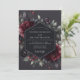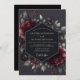 Embrace a dramatic and moody romance for your special day. This elegant design features a stunning arrangement of lush, painterly florals against a deep charcoal background. Rich claret peonies and dark anemones are artfully combined with muted green foliage and small crimson berries, creating a timeless, enchanting aesthetic.