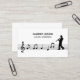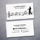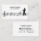 A simple business card with a silhouette of a clarinetist walking on a sheet of music including a treble clef and notes. The back comes with fully customisable contact information decorated by icons and a clarinet illustration. Perfect for clarinetist, lessons, teacher, musician performer, concert, etc.