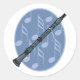 Blue music notes dance around a clarinet on this fun music gift for clarinet players.