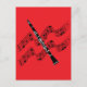 Clarinet on red background postcard