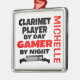 This ornament featuring the quote "Clarinet Player by Day Gamer by Night" is perfect for any clarinet player that loves playing video games.