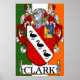 The beautiful ancestral Coat of Arms created in vibrant colour for the Irish surname Clark. 100% satisfaction guaranteed or your money back!
