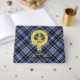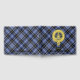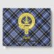 Clan Clark crest badge surrounded by a strap and buckle over tartan background. Custom front, back and spine text.