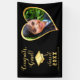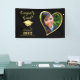 This modern black and gold graduation banner for the class of 2025 graduate features a heart-shaped photo, a "Congrats, Grad!" saying, and a graduate's cap illustration. Please personalise with the graduate's name, upload a custom photo via template, and change a year before ordering.