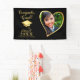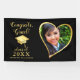 Create an elegant black and gold graduation banner for the class of 2025 graduate with a heart-shaped photo, a "Congrats, Grad!" saying, and a graduate's cap illustration. Please personalise with the graduate's name, upload a custom photo via template, and change a year before ordering. The background colour is customisable (you can change it inside the design tool).