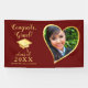 Create an elegant maroon red and gold graduation banner for the class of 2025 graduate with a heart-shaped photo, a "Congrats, Grad!" saying, and a graduate's cap illustration. Please personalise with the graduate's name, upload a custom photo via template, and change a year before ordering. The background colour is customisable (you can change it inside the design tool).