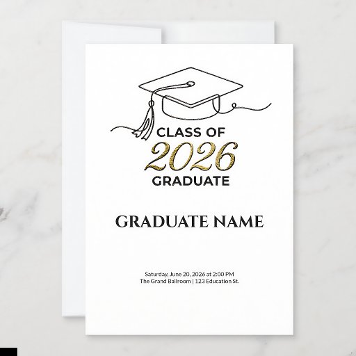 Features a gold foil mortarboard design on a solid background.