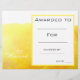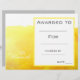 A stylish modern class art award certificate award with cute paint splash watercolor yellow image perfect for encouraging a young art student. You can write in your own details. A great resource for any type of classroom teacher.