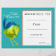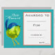 A stylish modern class award certificate award with cute watercolor bird image perfect for encouraging a young student. You can write in your own details. A great resource for any type of classroom teacher.
