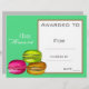 A stylish modern class award certificate award with cute colourful macaron cakes image perfect for encouraging a young student. You can write in your own details. A great resource for any type of classroom teacher.