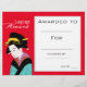 A school class academic award certificate award with a Japanese Geisha theme image in perfect for encouraging a young language student. You can write in your own details. A great resource for any type of classroom teacher.