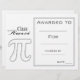 A grade school or high school class academic award certificate award with Mathematics symbols image of pi perfect for encouraging a young Math student. You can write in your own details. A great resource for any type of classroom teacher.
