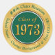 Class of 1973, Forest Green and Gold Stickers. Choose Size and Shape of Stickers, to fit the design or you may have to rearrange designs. CHANGE Green Background and Text to ANY COLORS and or TRANSFER this Design to over 1000 other class reunion ideas. Click "Personalise" Button. Delete temporary text and Type in Number of YEARS since Graduation, School Name, School Reunion Date or Your Text or Delete. Delete any Design Layers, Move, Resize Designs and Text. Change the Hunter Green Background and Text/Font COLORS and STYLE. Fully customisable. Great way to make Cheap High School Reunion Favours by putting these sticker on bags, boxes, decorations and more.