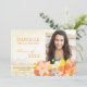 Colourful tropical flowers designed on custom Photo Graduation Announcements | Open House Party Invitations. This beautiful & unique flat card can serve as both senior open house invitation and/or senior graduation announcement. All the default text & photo can be fully customised with your own wording and photo. Feel free to change the sizes, fonts and colours of the text as well.