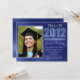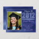 Class of 2012 Photo Graduation invitation is customisable. Blue grunge background has sponge painted look. Lighter shade of the background overlayed on silver coloured trim with raised appearance used for: Picture frame, Class Of 2012, and divider. All elements can be repositioned or deleted and replaced with your own. Replace the placeholder image with your child's picture. Replace the sample text with your own details and message. Delete any unwanted text. Plenty of space on back for extra information. Choose from a wide variety of fonts and colours. Can be used for any year, high school-college graduation.