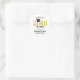 This square sticker offers a graduation design in gold and black with custom text for the graduate's name. The text reads: Class of 2018 Senior. A black mortarboard sits on top of the zero in the year.