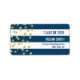 Graduation class of 2018 address labels with blue and white stripes and fun gold confetti pattern.