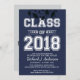 Classic Jersey style text for Class of 2018 in White and Silver over a Blue background - the back is silver that matches the stars and text on the front. You can Choose any colour background to match your school colours both front and back- the back has hands and graduation caps tossed in the air, the front has the same caps above the Class of 2018 - so if your school is Silver and any other colour you can easily match this grad party invitation to your colours. If you need help please feel free to contact me via the store contact form, I will be happy to assist.