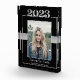 A black and silver Class of 2023 graduation photo keepsake that you can personalise as a memento for the twenty, twenty-three graduate. The background is black with a fine white line surrounding the portrait of the graduating student. You can easily replace the sample photo with your own using the template area.