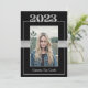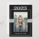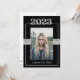 This black & silver Class of 2023 graduation invitation can be customised to invite to commencement exercises and/or a graduation party in honour of the graduate. This would work well for male or female graduates. The front features a portrait of the graduating student prominently placed with the 'class of 2023' above the photograph and the grad's name beneath. There is also a faux ribbon across the middle behind the picture. The back contains all the information required to attend the festivities. A black line and the 'class of 2023' are along the bottom edge. This invitation would work well for high school and college/university graduations.