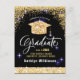 Class of 2023 Elegant Modern Gold Glitter Sparkly Graduation postcard. Celebrate your graduation party with this elegant and festive gold glitter sparkling luxury style invitation card featuring beautiful handwritten calligraphy . All the texts are pre-arranged for you to personalise easily and quickly with your own details.