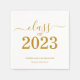 Stylish elegant custom graduation party supply! Celebrate the graduate's accomplishment in style with this trendy graduation paper napkin. Design features "Class of 2023" in gold font on a clean white background. Personalise this product by adding the name and school name. Easy to customise. Matching graduation party supplies available. Congratulations!