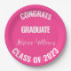 Congratulations, Class of 2023, graduation, college paper plates. Modern, pink, stylish party plates.