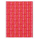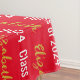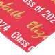 The tablecloth is bright red. It has a text pattern for the graduate's name and Class of 2024. The name (Shown: Elizabeth) appears in an elegant faux (not foil) gold script. The other text is white. All of the text can be edited.