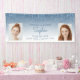 Welcome graduation party guests or simply announce her achievement with this chic, glamourous photo banner, featuring a sparkly blue faux glitter drip border and blue ombre background. Easily replace the two sample images with photos of the graduate. Personalise it with her name in blue handwriting script, with the class year and school in sans serif font. Perfect for high school or college graduation.
