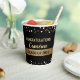 Celebrate the graduation party with personalised Class of 2024 Customisable Graduation paper cups! Black with gold white confetti.