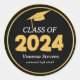 Class of 2024 Elegant black Gold Personalised Classic Round Sticker