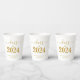 Stylish elegant custom graduation party supply! Celebrate the graduate's accomplishment in style with this trendy graduation party paper cups. Design features "Class of 2024" in gold font on a clean white background. Personalise this product by adding the name and school name. Easy to customise. Matching graduation party supplies available. Congratulations!