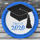Use these Class of 2024 Grad Cap Blue and Black Plates to serve food to your guests. Customise with your grad's class year. It features a grad cap with 'Class of 2024' in a stylish blue script.