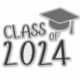 Class of 2024 graduation sticker decal. "Class of 2024" text and grad hat/cap graphic. Can be placed on a car, laptop, or anywhere. Express your love, pride and support for the graduating class of 2024!