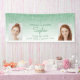 Welcome graduation party guests or simply announce her achievement with this chic, glamourous photo banner, featuring a sparkly green faux glitter drip border and ombre background. Easily replace the two sample images with photos of the graduate. Personalise it with her name in green handwriting script, with the class year and school in sans serif font. Perfect for high school or college graduation.