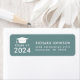Elegant White graduation return address label featuring a green grad cap and the graduate's name and address in modern .