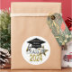 Cool, modern look "Class of 2024” graduation popular round shape envelope seals and stickers in stylish gold and silver numbers graphic design on a clean white contrasting background and a black graduation cap graphic design with a gold tassel. A sparkling gold star also adds to this fun design. Easily add the school name, graduate's name or any custom text to personalise onto the graduation hat. Great for the whole senior graduating class!