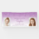 Welcome graduation party guests or simply announce her achievement with this chic, glamourous photo banner, featuring a sparkly purple faux glitter drip border and purple ombre background. Easily replace the two sample images with photos of the graduate. Personalise it with her name in purple handwriting script, with the class year and school in sans serif font. Perfect for high school or college graduation.
