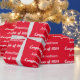 This bright red wrapping paper has a text template you can edit. You can change the white text to show your graduate's name, the year the student is graduating (shown: Class of 2024), and a custom message (shown: Congratulations). Congratulations and Class of 2024 are in an elegant script, but the graduate's name is not in a script.