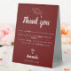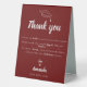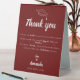 Class of 2024 Red White Photo Graduation Thank You Table Tent Sign . The design has a thank you message on a red background and a thank you message written in a pretty font with the grad's name . The back has space to add a photo of your senior grad's photo . Show your gratitude and give thanks with this unique party table tent sign with a customised thank you message saying how grateful you are for all the support . Customise it by changing the name and photo of the graduate. For any further customisation , feel free to contact me at mypaperlove2021@gmail.com