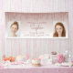 Welcome graduation party guests or simply announce her achievement with this chic, glamourous photo banner, featuring a sparkly rose gold faux glitter drip border and ombre background. Easily replace the two sample images with photos of the graduate. Personalise it with her name in dark rose handwriting script, with the class year and school in sans serif font. Perfect for high school or college graduation.