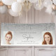 Welcome graduation party guests or simply announce her achievement with this chic, glamourous photo banner, featuring a sparkly silver faux glitter drip border and silver grey ombre background. Easily replace the two sample images with photos of the graduate. Personalise it with her name in grey handwriting script, with the class year and school in sans serif font. Perfect for high school or college graduation.