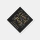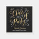 Stylish graduation party napkins feature an elegant design in faux gold foil script with pretty white scroll accents. Personalise this design with elegant custom text for the graduate's name and school. Note, the black background colour can be modified to coordinate with school or party colours.
