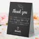 Class of 2025 Black Photo Graduation Thank You Table Tent Sign . The design has a thank you message on a black background and a thank you message written in a pretty font with the grad's name . The back has space to add a photo of your senior grad's photo . Show your gratitude and give thanks with this unique party table tent sign with a customised thank you message saying how grateful you are for all the support . Customise it by changing the name and photo of the graduate. For any further customisation , feel free to contact me at mypaperlove2021@gmail.com