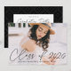 Invite guests to celebrate the grad with our stylish photo graduation invitations. The front of the graduation party invitations display the graduate's photo with "Class of 2025" in a black modern calligraphy script overlay. Personalize the front of the modern graduation party invites by adding the graduate's name, school name, and graduation year. The invite reverses to display your graduation party details and a trendy black and white dotted geometric pattern. The design is perfect for both high school and college graduates.
